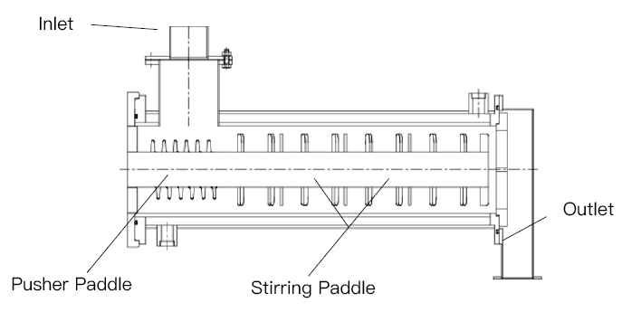 The equipment features a discharge device that uniformly feeds materials from the inlet into the grinding chamber, where grinding media are agitated by a rotor, resulting in friction and impact to crush the materials. A spiral pusher paddle near the discharge outlet propels the material toward the exit, enabling continuous production. Simulation technology optimizes the equipment structure, enhancing the probability of effective media collisions and significantly improving production capacity.