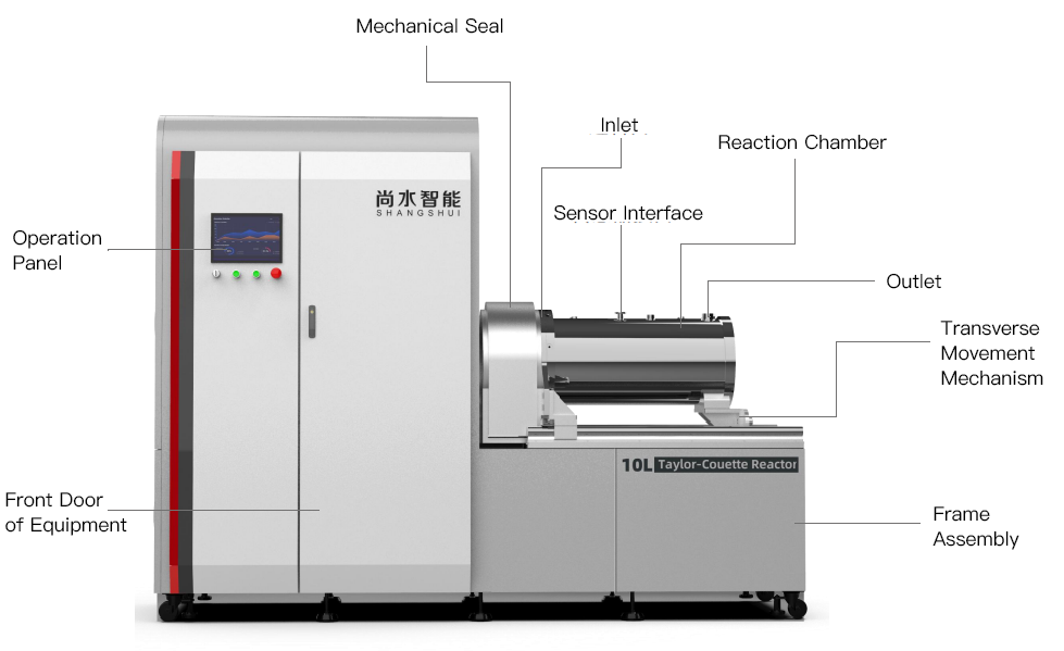 Materials are positioned between two coaxial cylinders that rotate relative to each other (typically with the inner cylinder rotating while the outer cylinder remains stationary). When the inner cylinder’s rotation speed surpasses a specific critical value, centrifugal force generates a series of alternating, orderly arranged annular vortices (Taylor vortices) along the cylinder’s axial direction. This secondary flow, superimposed on the rotating main body flow along the rotation axis, is referred to as Taylor flow. The Taylor reactor’s flow state remains stable, enabling consistent process conditions over the long term and ensuring continuous particle production.